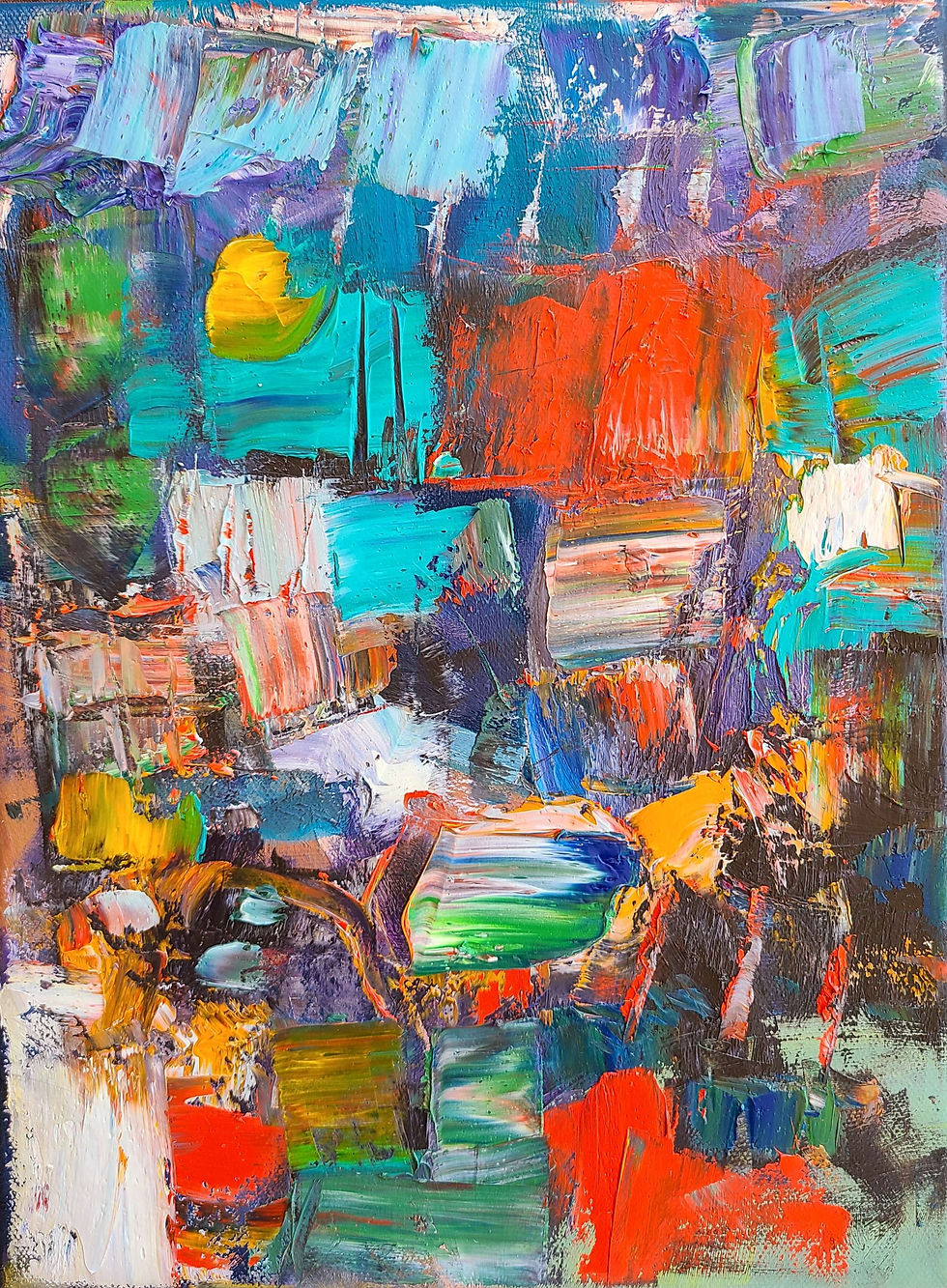 Stacy is currently exploring various techniques to make her oil paint come alive and create an optical sense of movement. Exploring different methods, she aims to breathe new life into her artwork, inviting viewers to experience a dynamic visual journey. Each piece reflects her passion for innovation and her commitment to pushing the boundaries of traditional painting. Her styles range from thick impasto, geometric and abstract expressionism and color blocking, to impressionism and also some figurative and representational, but most are non-representational art.